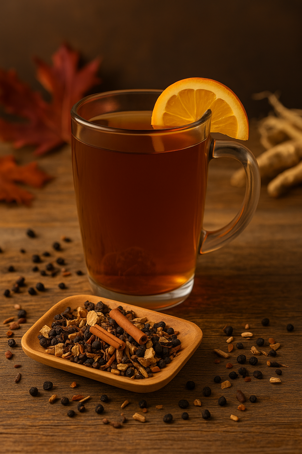 This warming tonic is designed to support immunity, digestion, and circulation during the cooler fall months. It combines grounding roots, immune-strengthening herbs, and spices to keep your body resilient.