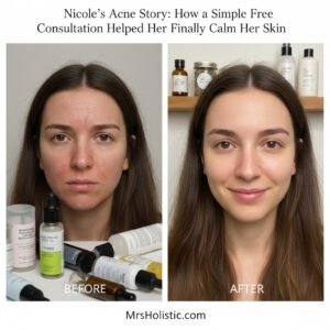 If you want to experience the same kind of clarity Nicole did, you can always join my Free Consultation and explore my natural skincare recommendations at Mrsholistic.com.