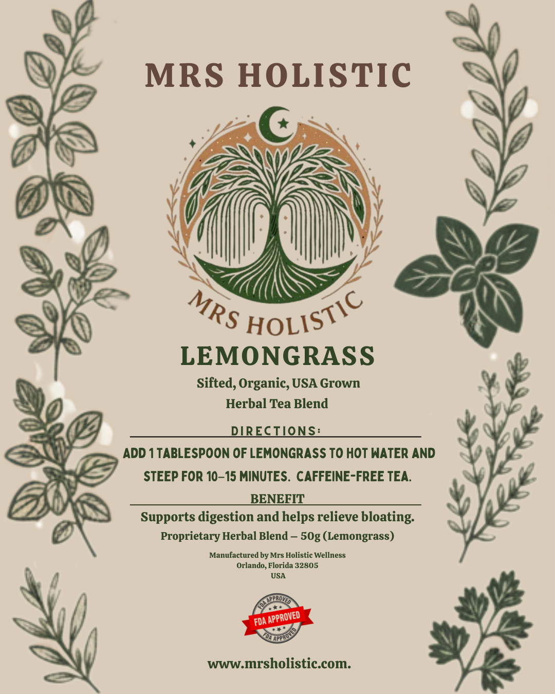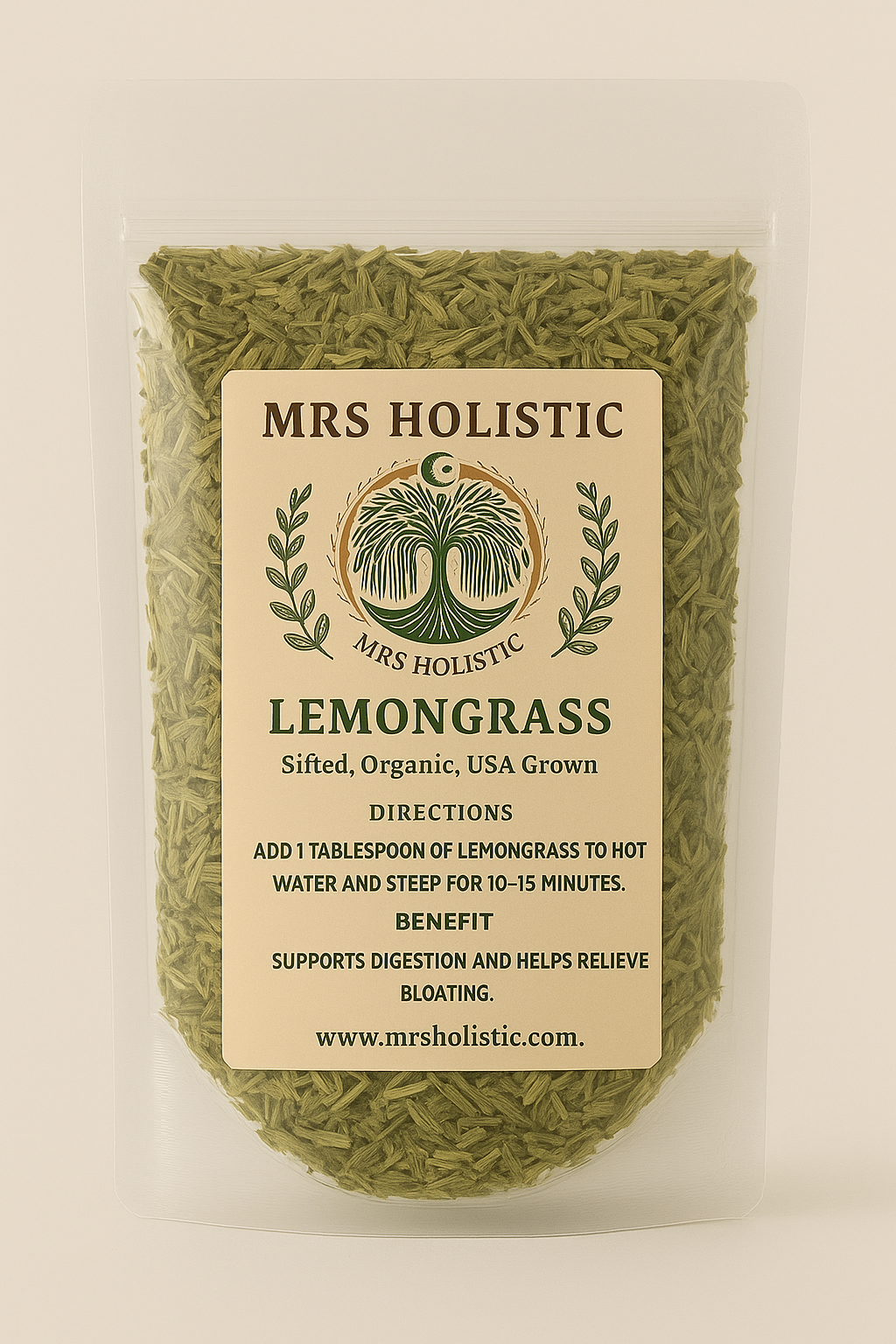 Lemongrass, often called “the calming citrus herb,” is a natural powerhouse for wellness. Rich in antioxidants and essential oils, it helps cleanse the body, support healthy digestion, and ease bloating or discomfort. Its natural anti-inflammatory and antimicrobial properties make it a favorite for immune and skin health.