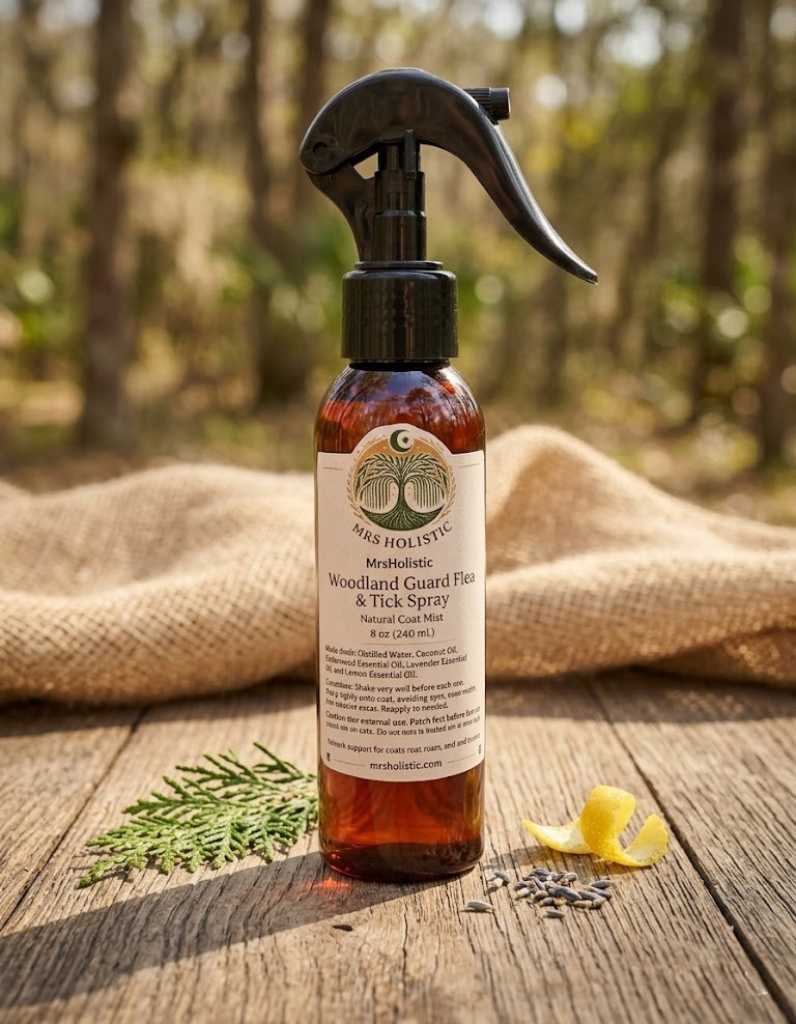 Protect your pet with the gentle power of Mrs. Holistic Woodland Guard. This 8oz natural coat mist is crafted with a soothing blend of distilled water, coconut oil, and pure essential oils like cedarwood, lavender, and lemon to repel pests without harsh chemicals. Simply shake and mist onto your dog’s coat before heading outdoors to provide a botanical barrier that keeps them comfortable and smelling fresh throughout all their woodland roams.